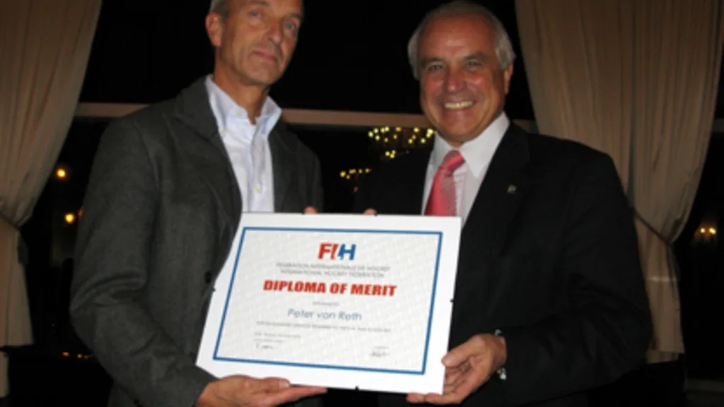 Bekas pengadil antarabangsa Peter von Reth telah dianugerahkan Diploma Merit oleh Presiden FIH Leandro Negre pada persembahan yang disusun secara khusus pada petang Rabu.