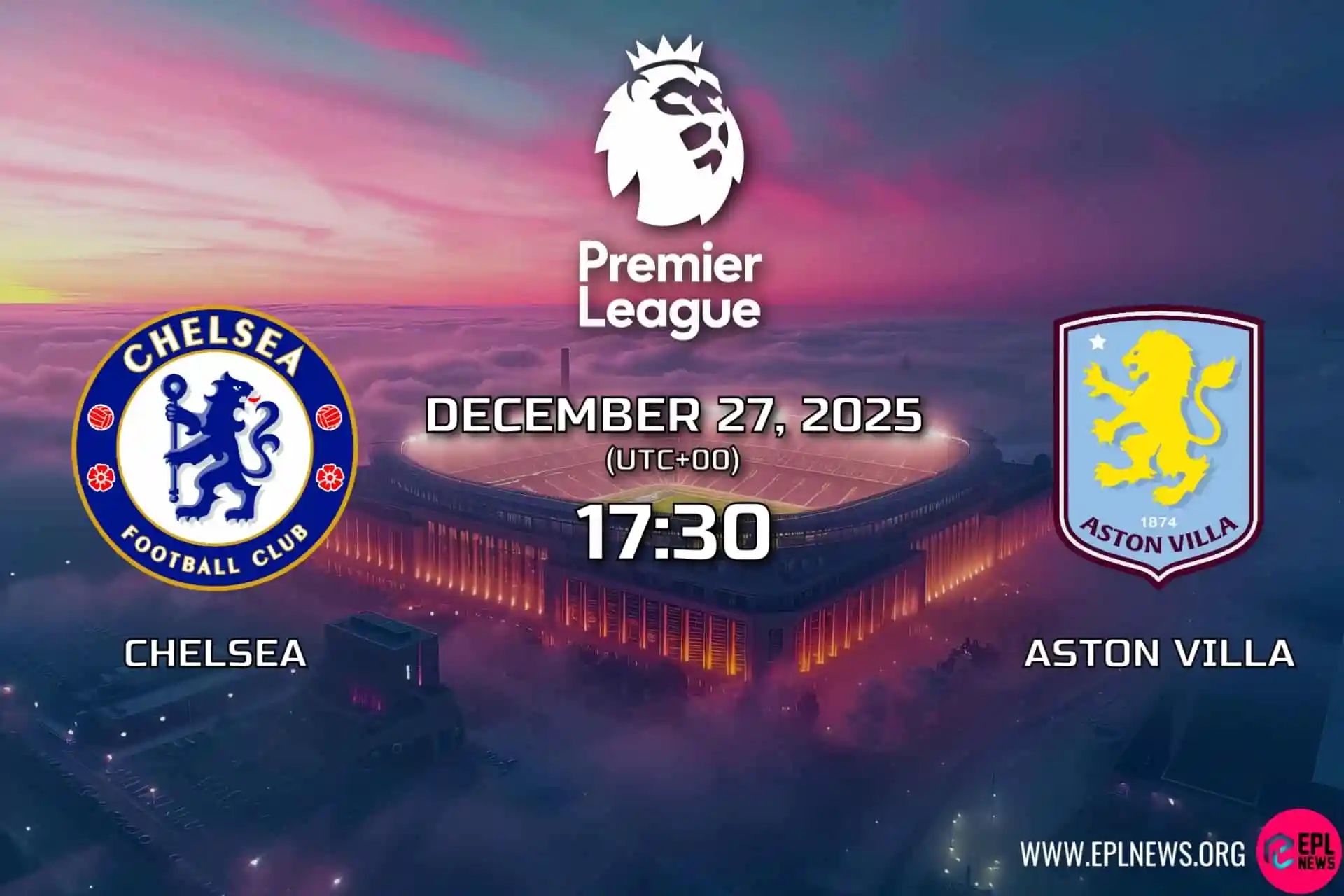 Jadual perayaan Liga Perdana Sabtu ini diakhiri dengan salah satu perlawanan yang menonjol pada pusingan itu, ketika Chelsea menerima kunjungan Aston Villa dalam pertembungan menarik di kelompok empat teratas di Stamford Bridge. Dengan kedua-dua pihak memendam cita-cita Liga Juara-Juara dan Villa berani bermimpi lebih besar, pertemuan ini mungkin mempunyai kesan yang ketara di kedua-dua hujung bahagian atas jadual.