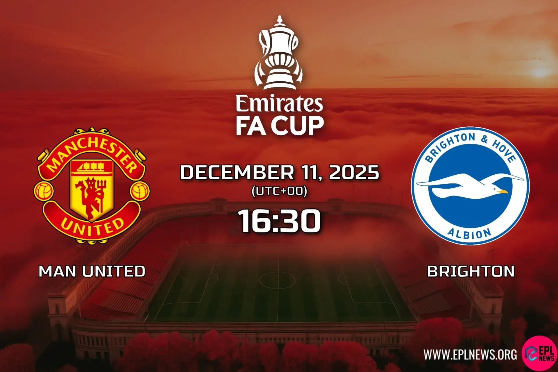 Manchester United secara sejarah mendominasi perlawanan Piala FA menentang Brighton, memenangi setiap pertemuan sebelumnya dalam pertandingan ini. Dalam pertemuan liga terakhir mereka di Old Trafford, United muncul dengan kemenangan 4-2, tetapi kunjungan Brighton baru-baru ini ke venue ini telah membuahkan hasil yang positif. Brighton telah menikmati permainan yang hebat baru-baru ini dalam perlawanan ini secara keseluruhan, termasuk kemenangan 3-1 Liga Perdana di Old Trafford pada awal kempen 2025/26, dan telah menewaskan United enam kali dalam tujuh pertemuan liga terakhir mereka.