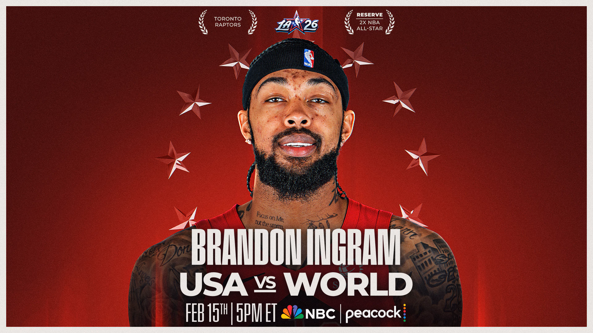 NEW YORK – Penyerang Toronto Raptors Brandon Ingram telah dinamakan oleh Pesuruhjaya NBA Adam Silver untuk menggantikan pengawal Golden State Warriors yang cedera, Stephen Curry di Stripes Amerika Syarikat untuk Permainan All-Star NBA 2026. Permainan All-Star NBA ke-75 akan berlangsung pada hari Ahad, 15 Februari jam 5 petang ET di Intuit Dome di Inglewood, Calif., disiarkan di NBC dan Peacock.