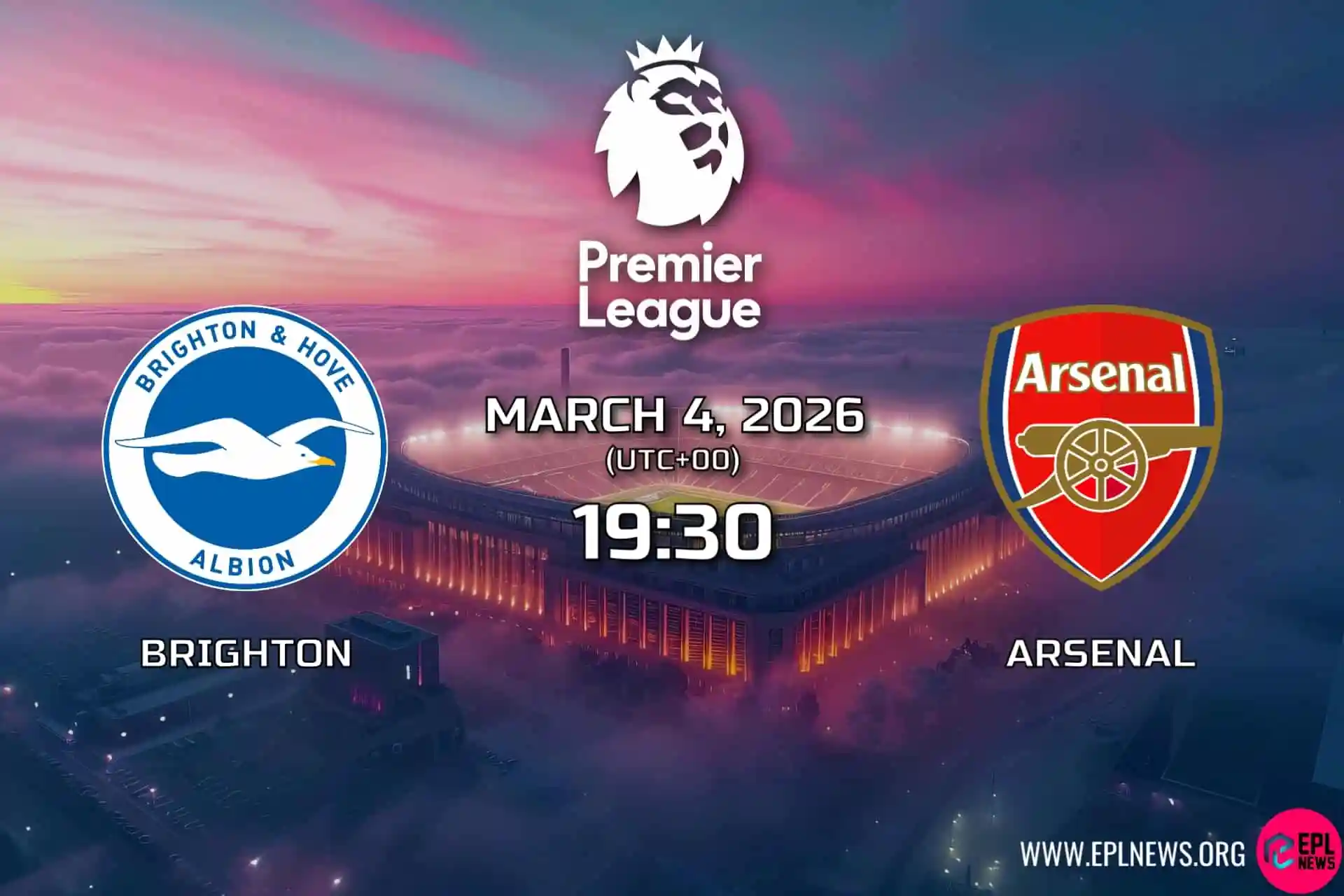 Brighton bolos tepat sekali dalam empat daripada lima perlawanan terakhir Liga Perdana mereka. Brighton tidak tewas di tempat sendiri musim ini apabila mendahului pada separuh masa, menang empat dan seri satu. Arsenal telah menjaringkan sembilan gol kemenangan perlawanan dari sepakan sudut musim ini, rekod satu musim Liga Perdana. Terdapat jaringan selepas minit ke-85 dalam tiga daripada empat perlawanan liga di tempat lawan terakhir Arsenal.
