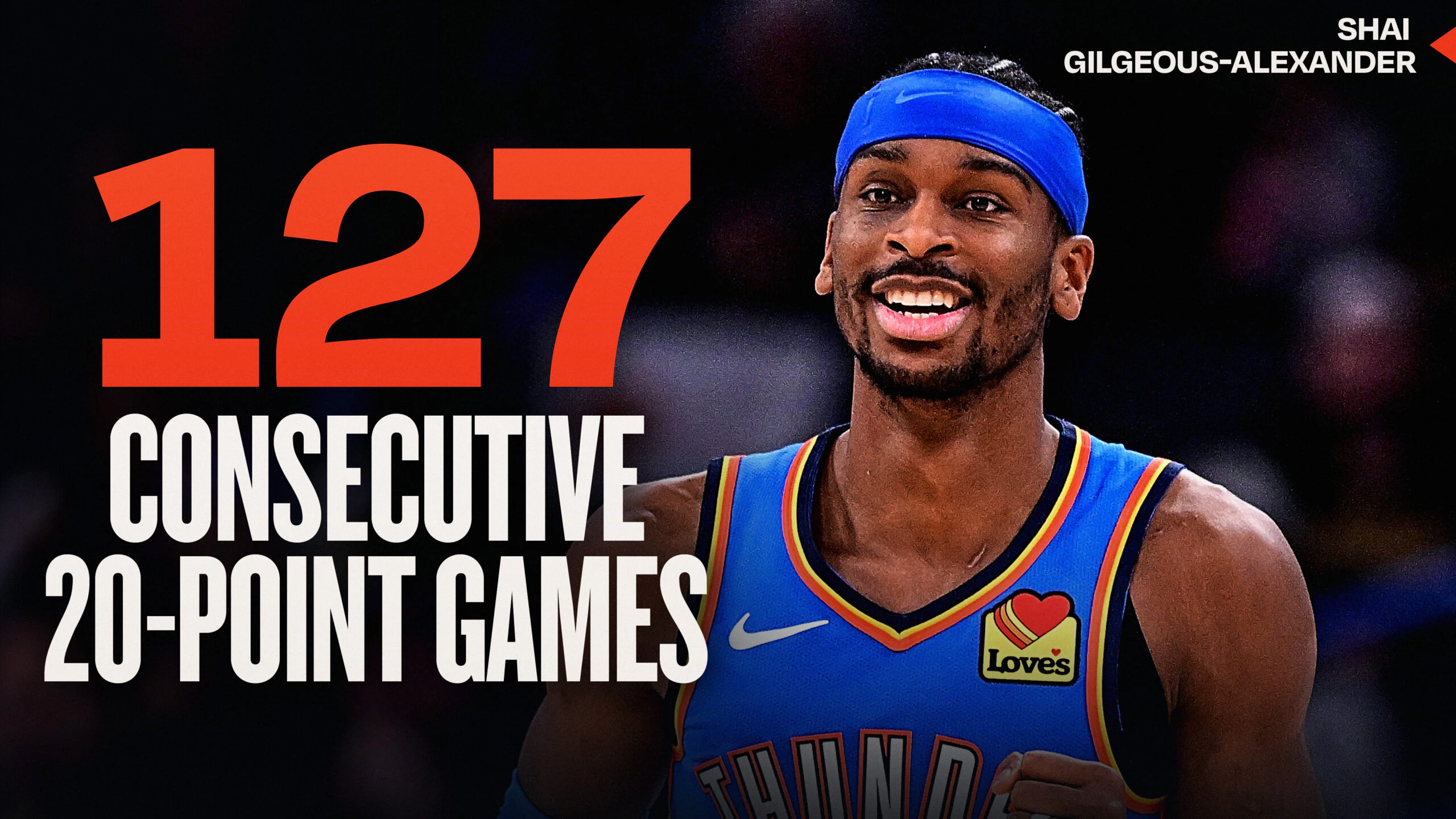 In the 496 days of Shai’s 20+ point streak, he has earned an NBA championship, the Kia MVP and Finals MVP awards, a scoring title, two All-Star selections and 1st Team All-NBA honors. | More on Shai’s historic night